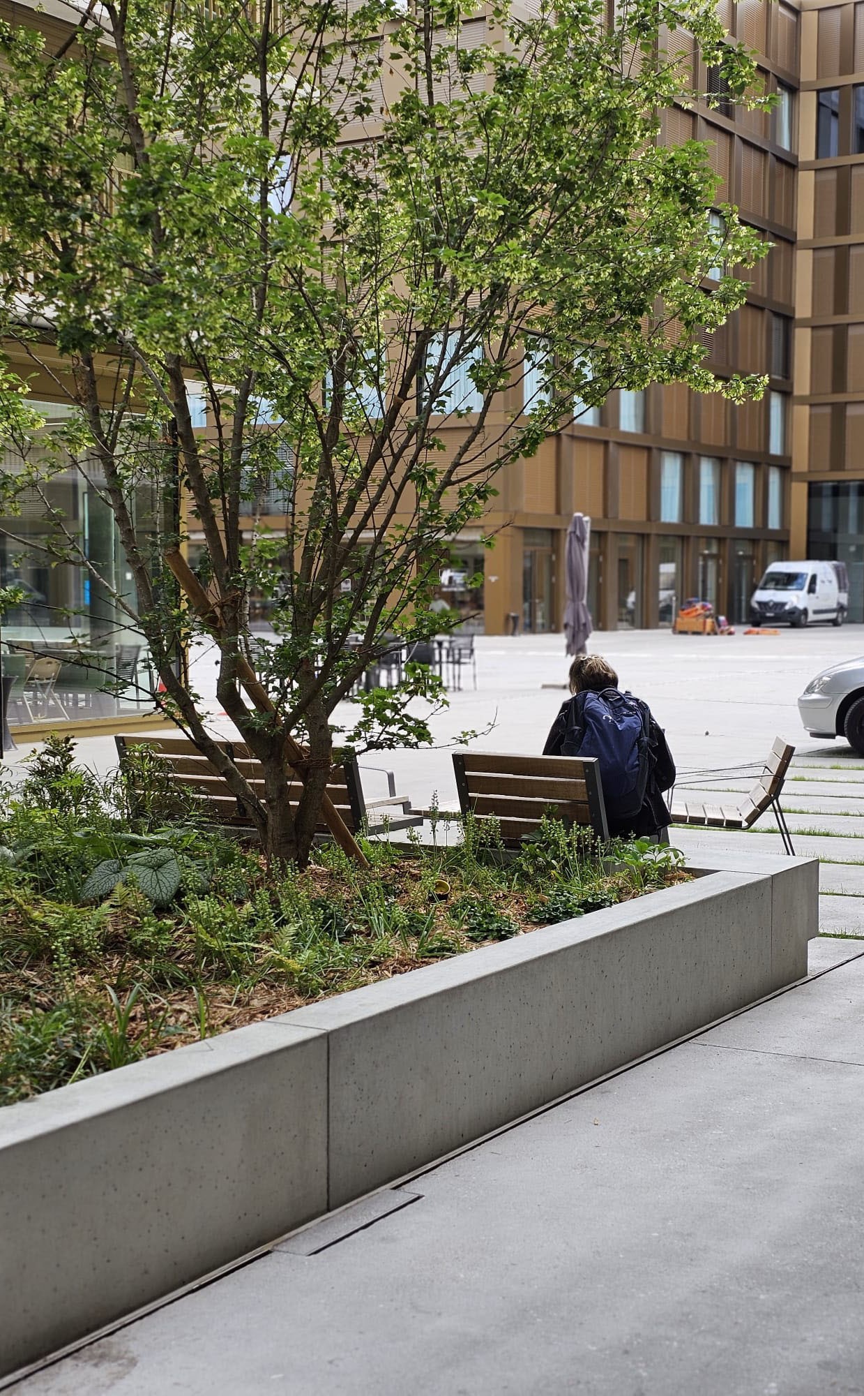 Le projet d’aménagement extérieur s’inspire de l’esprit du lieu, une friche urbaine et ferroviaire. Les espaces de déambulation sont caractérisés par de grandes dalles de béton. Leurs joints de dilatation dessinent un calepinage répondant à la parallèle des voies ferrées mais également au rythme donné par les façades des bâtiments. S’inspirant de la végétation qui colonise les moindres interstices des dallages actuels voués à être démolis, le projet prévoit des largeurs perméables plantées au cœur des dallages, agrémentant les rues minérales.