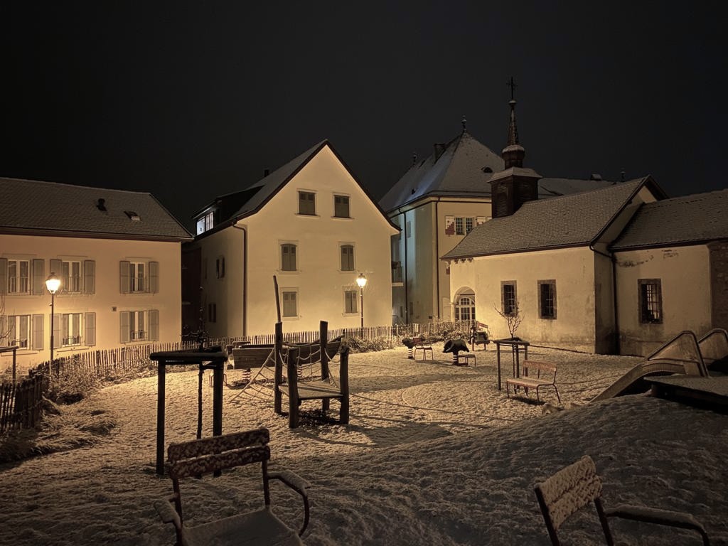 Le Service des Bâtiments et Monuments historiques (SBMA) a surveillé de près le développement du projet. Le site se trouve en effet dans le quartier classé à l’inventaire fédéral ISOS, dans un espace libre de grande qualité composé de jardins et de prés. Ancien cimetière en lien avec la chapelle de la Sainte-Famille, le périmètre fut ensuite recouvert de jardins, avant sa transformation en place de jeux.