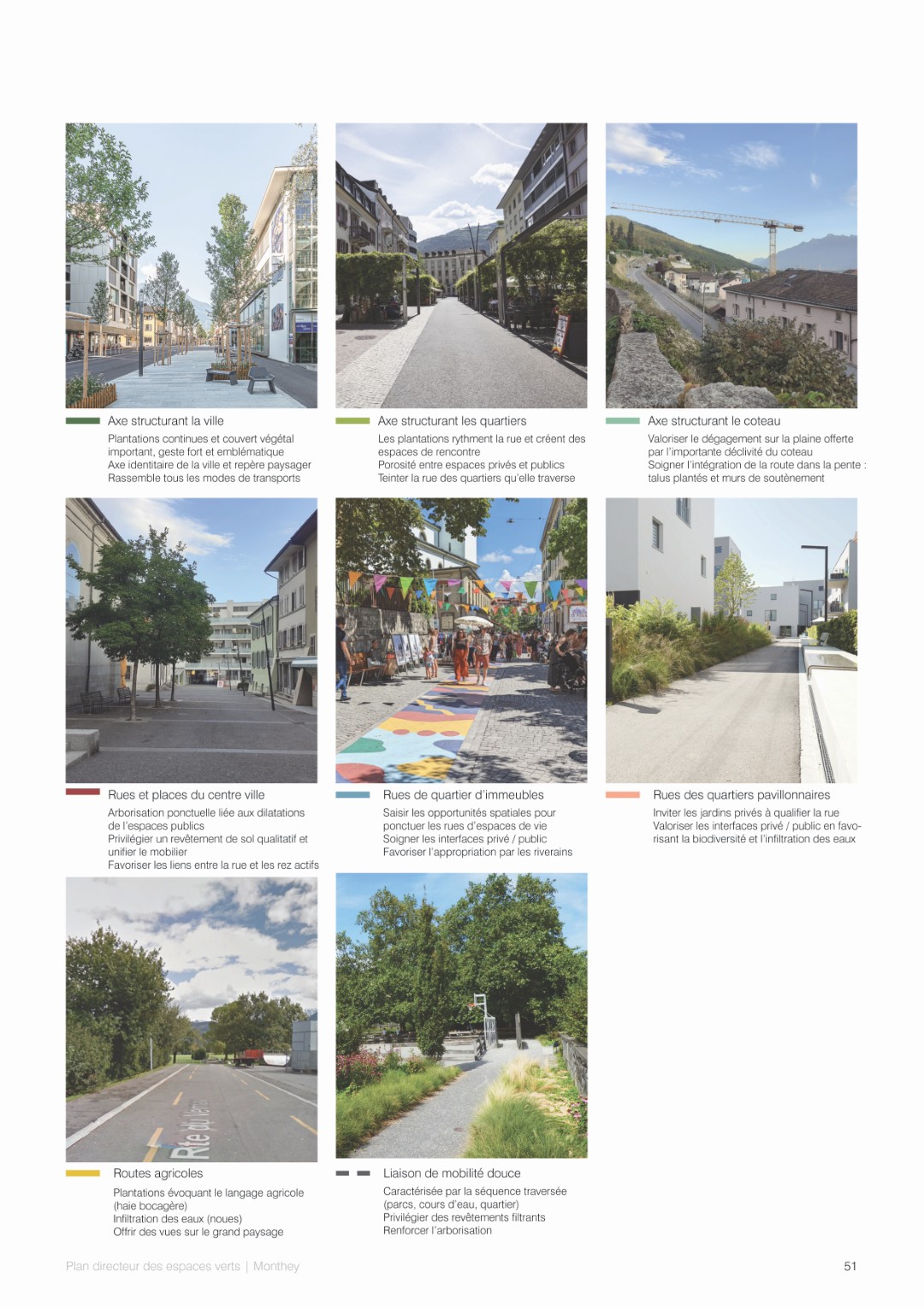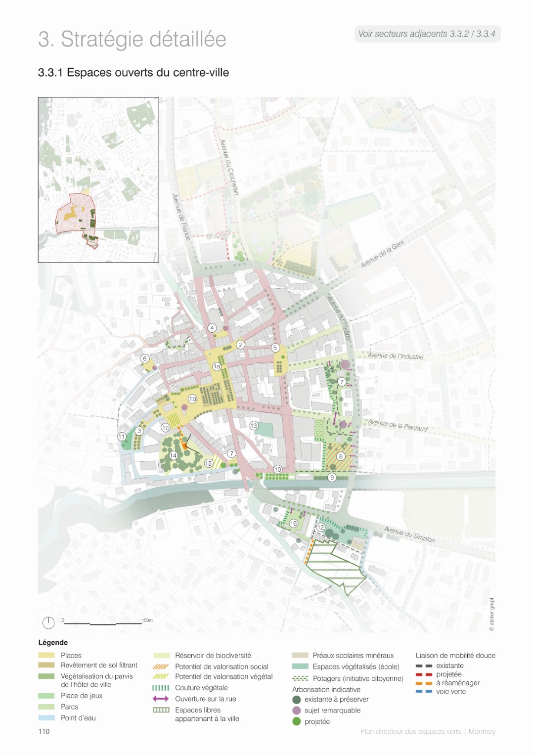 Le plan directeur des espaces verts de la ville de Monthey est un document stratégique offrant une vision d’ensemble pour la promotion de la nature en ville, en travaillant sur les trames verte, bleue, brune et noire. C’est un outil de planification, offrant des solutions d’aménagement pour chaque typologies d’espaces, à destination des différents acteurs de l’aménagement du territoire qu’il s’agisse des politiques, des services de la ville ou des mandataires en charge de projets d’aménagement urbain.